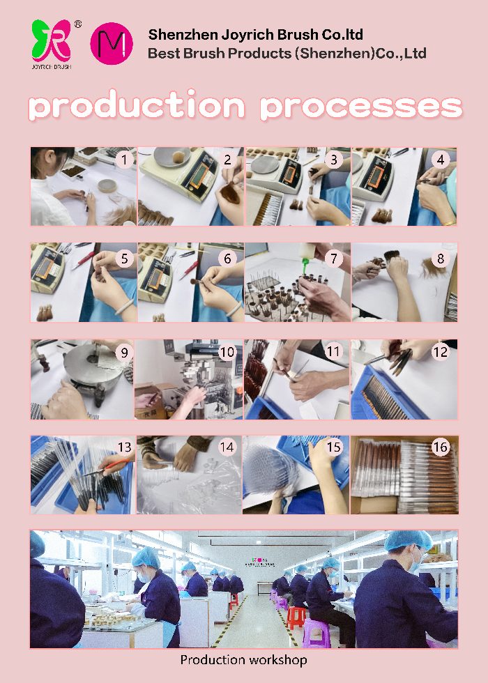 Fiecare perie trebuie să treacă șase runde de inspecție:1. Calitatea, lungimea și forma părului; 2. ;Verificarea scurgerilor de adeziv;3.Test de fixare a vârfului și de elasticitate;4.Test de scurgere;